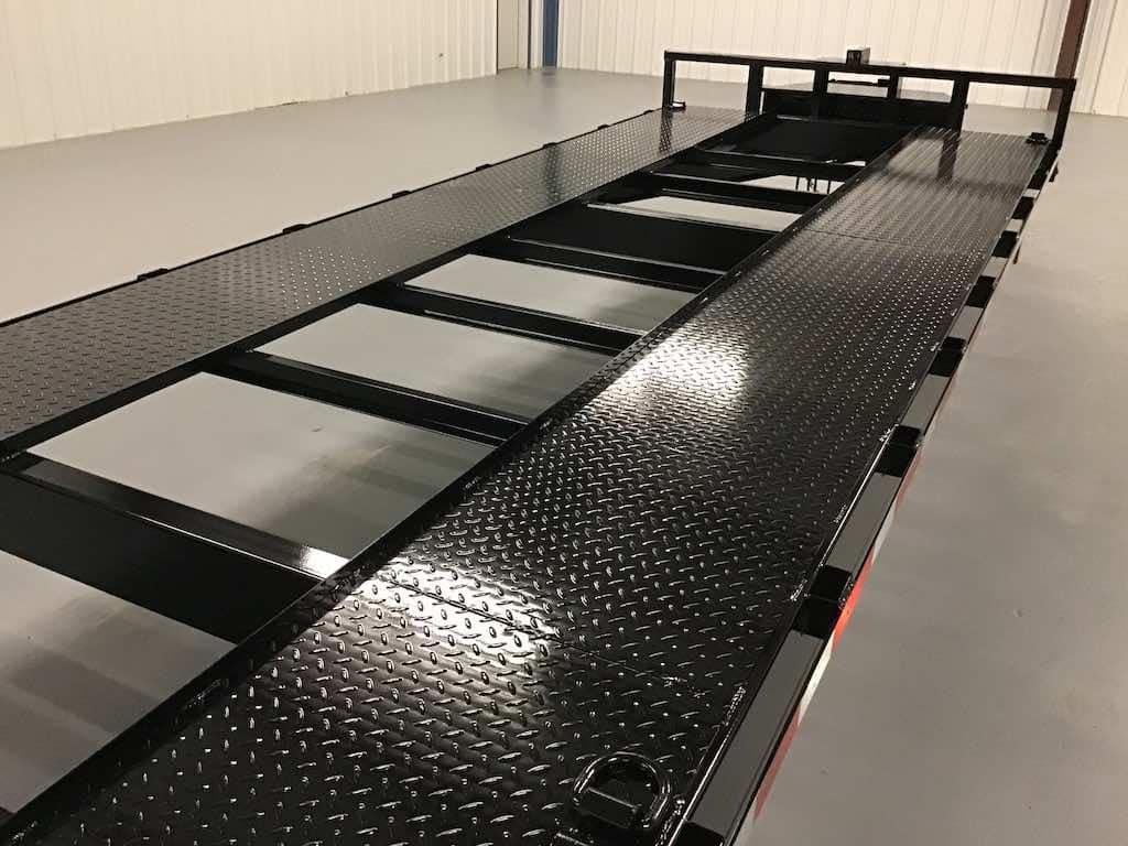 | 102″ wide deck with drive over fenders (for hauling dually pickups) | $700 |