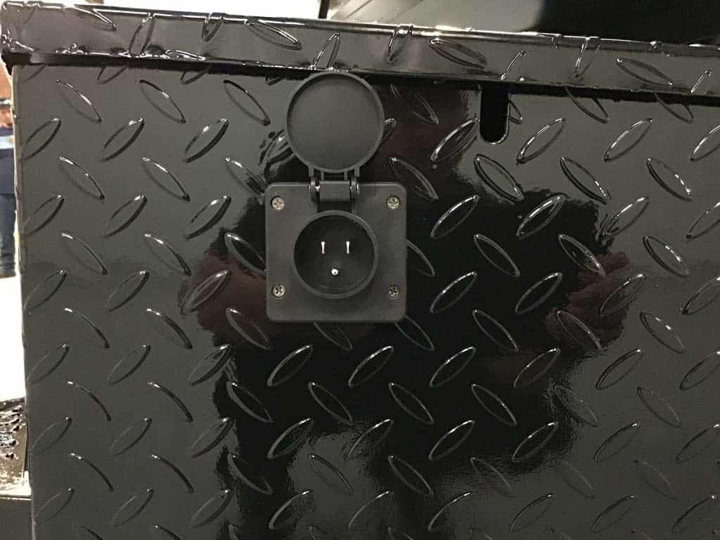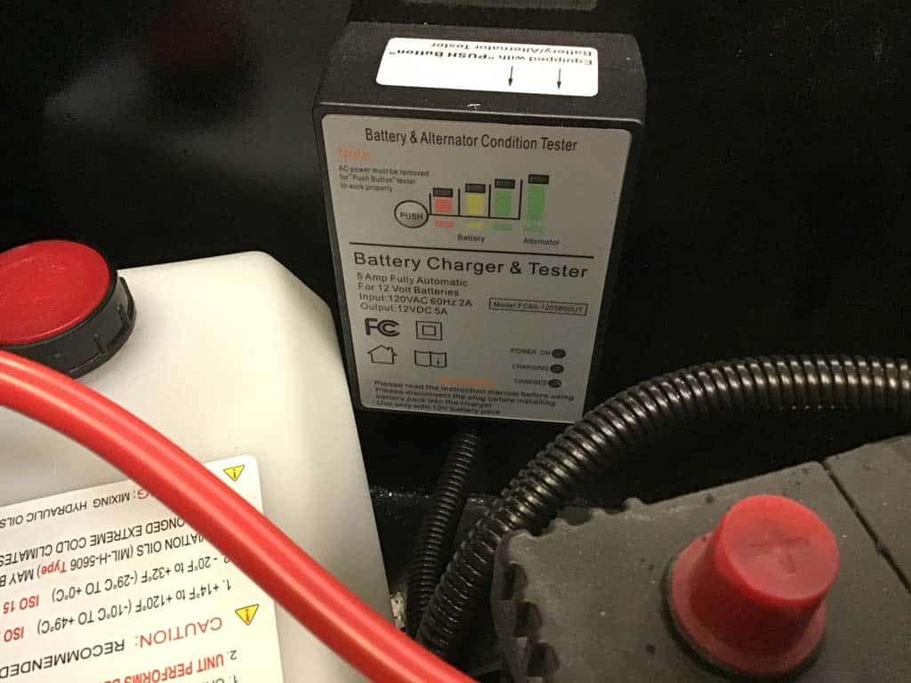 Onboard 110v charger and tester (also charges off truck while being towed)