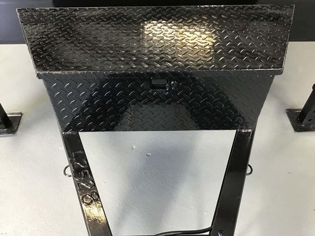 Front locking tool box - contains batteries and pump