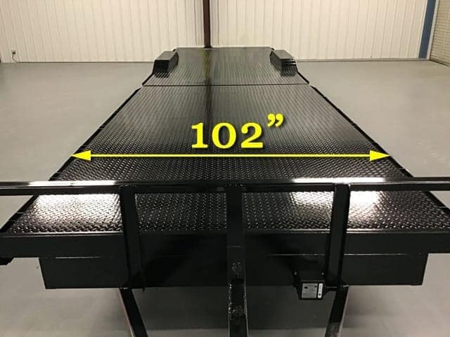 102” except between the fenders (82” wide)