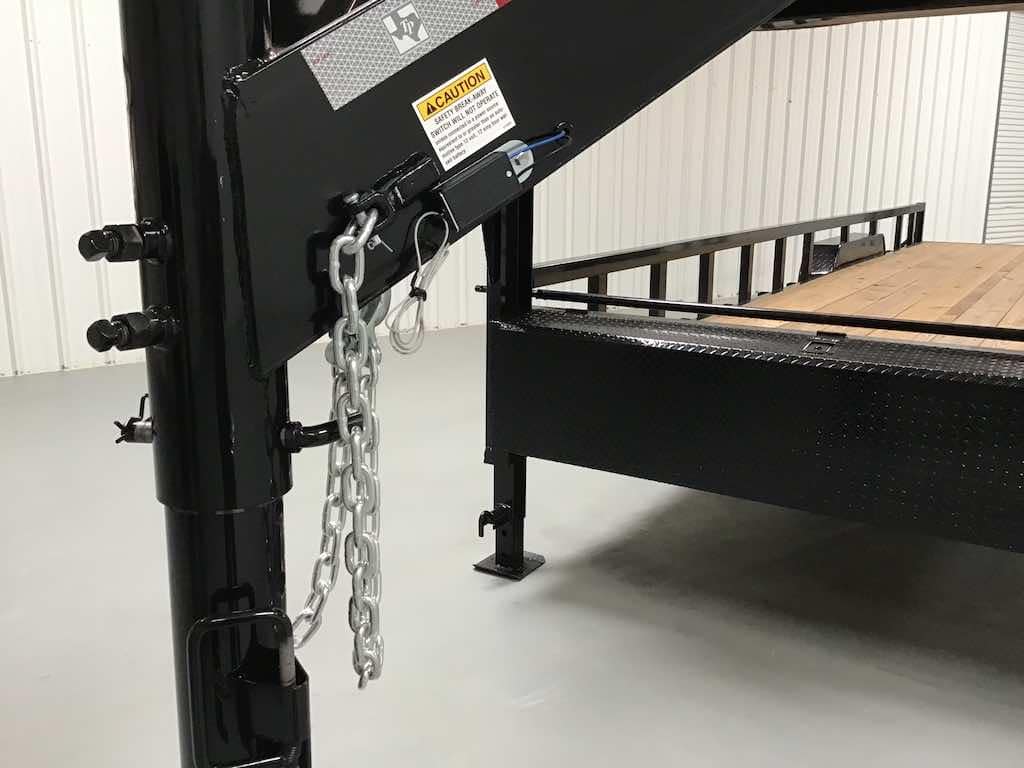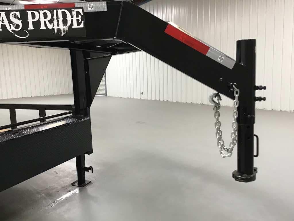 Gooseneck trailers connect over the rear axle in your truck bed, offering better stability, tighter turning, and higher payload capacity. If you’re hauling heavier loads or towing often, gooseneck’s the way to go.