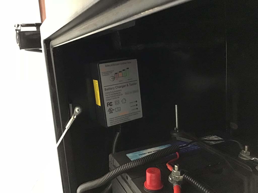 Onboard 110v charger and tester (also charges off truck while being towed)